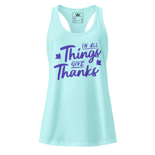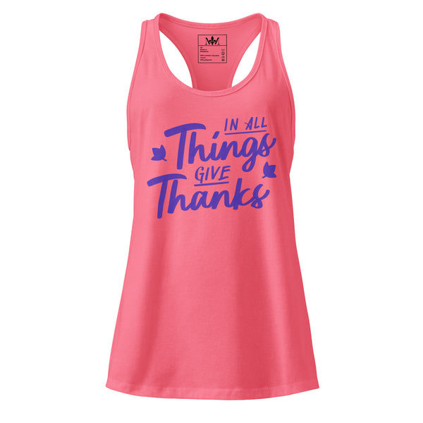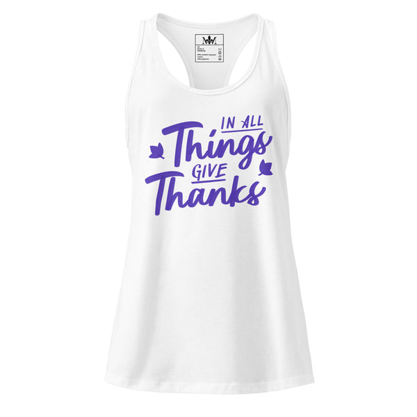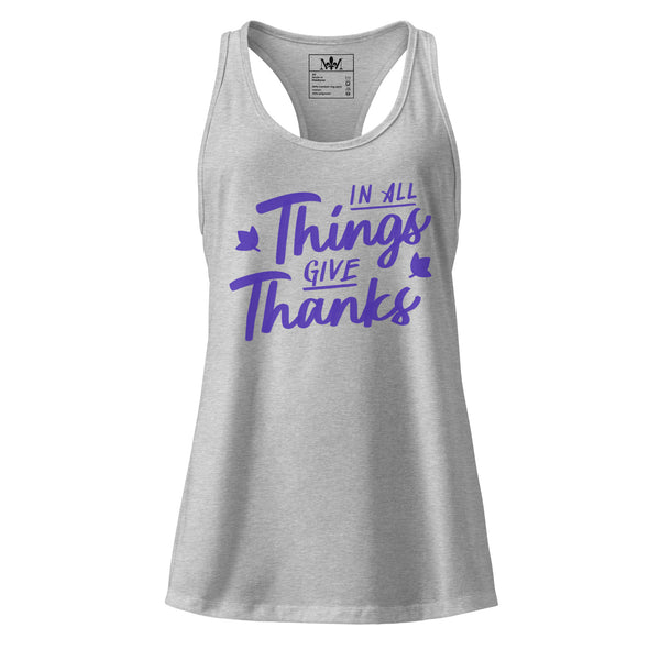 In All Things Give Thanks design in purple on your new go-to tank for everything from gym sessions to weekend errands. It’s soft, stretchy, and fitted in all the right places, with matching seams that give it a clean, seamless look. Lightweight and breathable, it moves with you—whether you’re lifting, lounging, or layering.