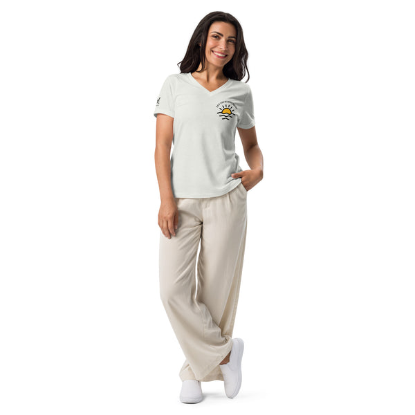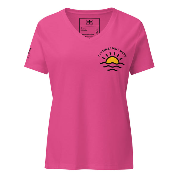 Let your light shine in ultimate comfort with this women’s V-neck t-shirt. Its soft fabric and relaxed fit make it ideal for a polished everyday look, with the V-neck adding a touch of style.