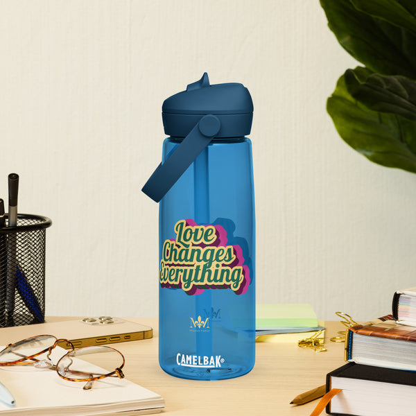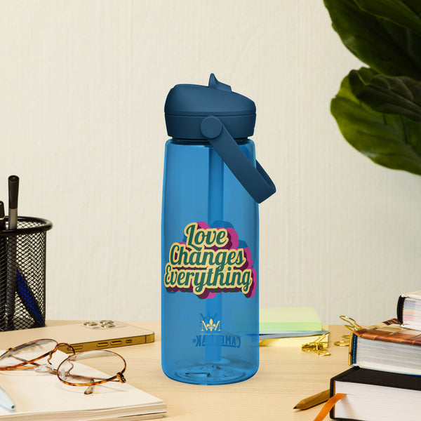 Let the world know that love is the secret while staying hydrated in style with this flip straw water bottle from Camelbak, made from 50% recycled plastic. Resistant to stains, shattering, and odors, it keeps your drinks fresh, while the leak-proof cover and bite valve prevent spills. This extra-large bottle is ideal for extended gym, work, or late night reading sessions!
