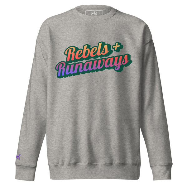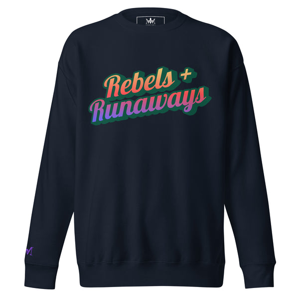 Rock your love of the Rebels + Runaways community in this classic sweatshirt complete with an embroidered Meghan March logo in purple, ribbed crew neck, long sleeve cuffs, and a flat hem. With the soft fleece inside and comfortable fit, it will become your favorite everyday shirt! Be sure and grab the matching sweatpants HERE!